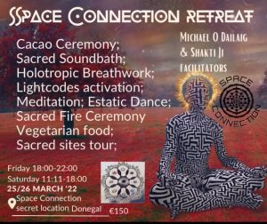 • In this workshop we will learn, Chanting Sanskrit, & Gaelic prayers & Mantras; Breathwork techniques; Chakra Activation, Grounding, centre & balance methods etc.